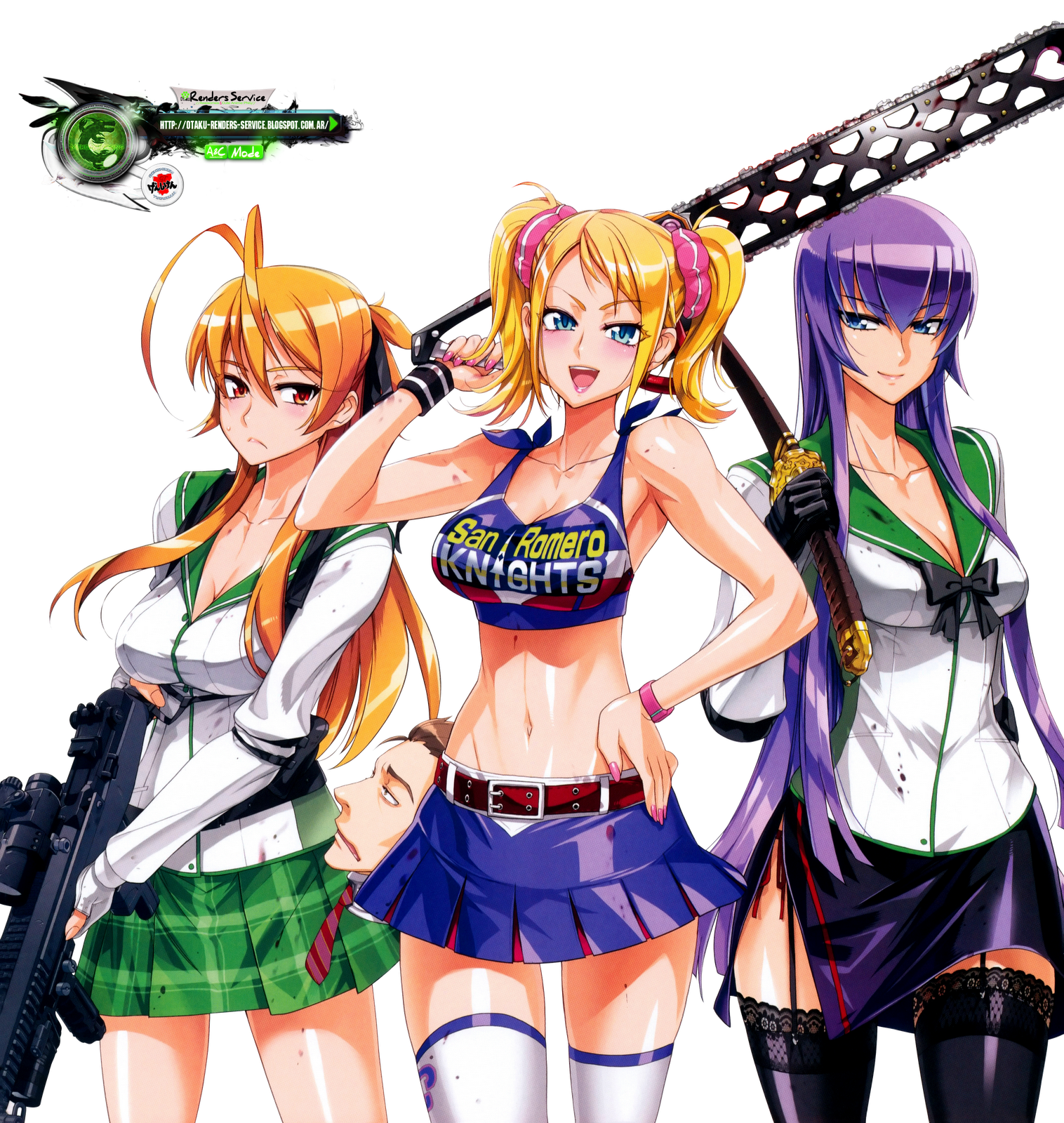 Highschool of The Dead X Lolipop Chainsaw:Rei Miyamoto+Saeko Busujima+Juliet Starling Kakoiii HD Render