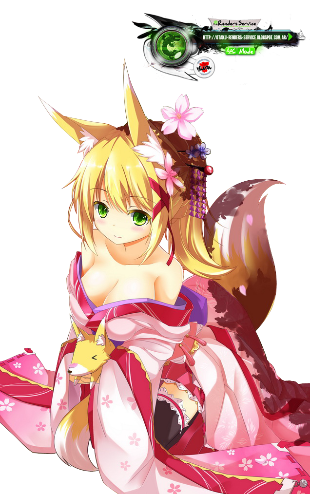Kitsune Girl Sexy Kimono Render