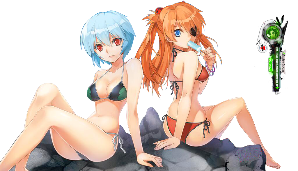 Evangelion:Asuka+Rei Hyper Cute+Sexy Mizugi Render